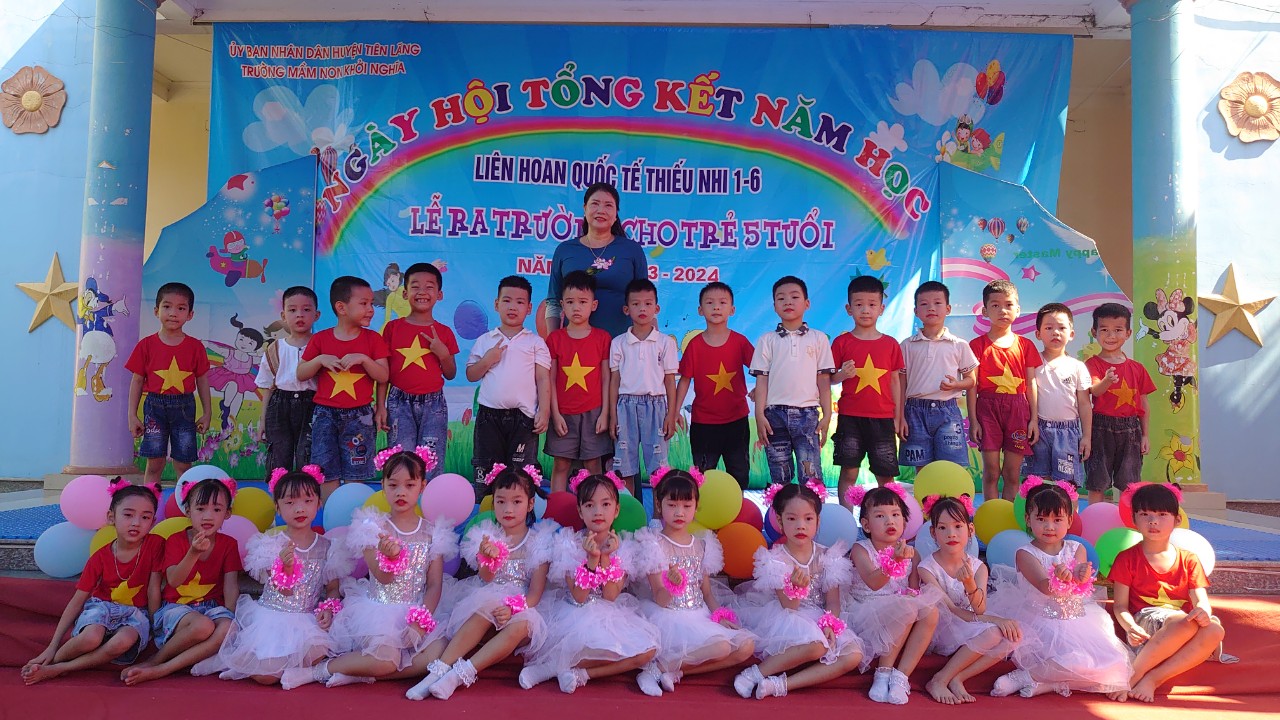 trường mầm non Khởi Nghĩa tổ chức Liên hoan Quốc tế thiếu nhi 1-6 – Lễ ra trường cho trẻ 5 tuổi năm học 2023 – 2024. Buổi lễ diễn ra với nhiều cảm xúc khó tả, nhất là đối với các em khối 5-6 tuổi, xa mái trường mầm non, xa các cô giáo đã hằng ngày chăm sóc các em từng bữa ăn, giấc ngủ, dạy các em từng điệu múa, lời ca, nuôi dưỡng các em có một tâm hồn cao đẹp từ khi các em đang là mầm xanh tương lai của đất nước. Cả cô và trẻ đều đã để lại trong lòng nhau những tình cảm yêu thương không thể nào quên