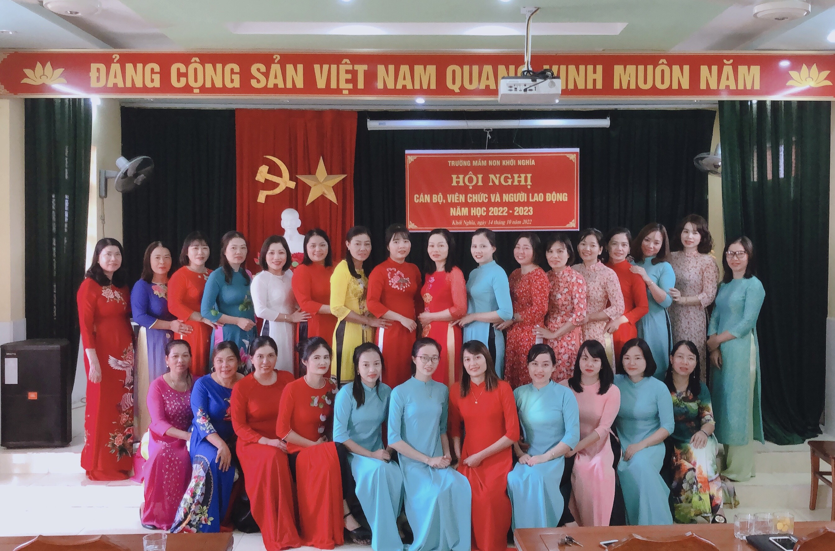 Thực hiện nhiệm vụ năm học 2022-2023. Chiều ngày 14/10/2022 trường mầm non Khởi nghĩa long trọng tổ chức Hội nghị cán bộ viên chức và người lao động